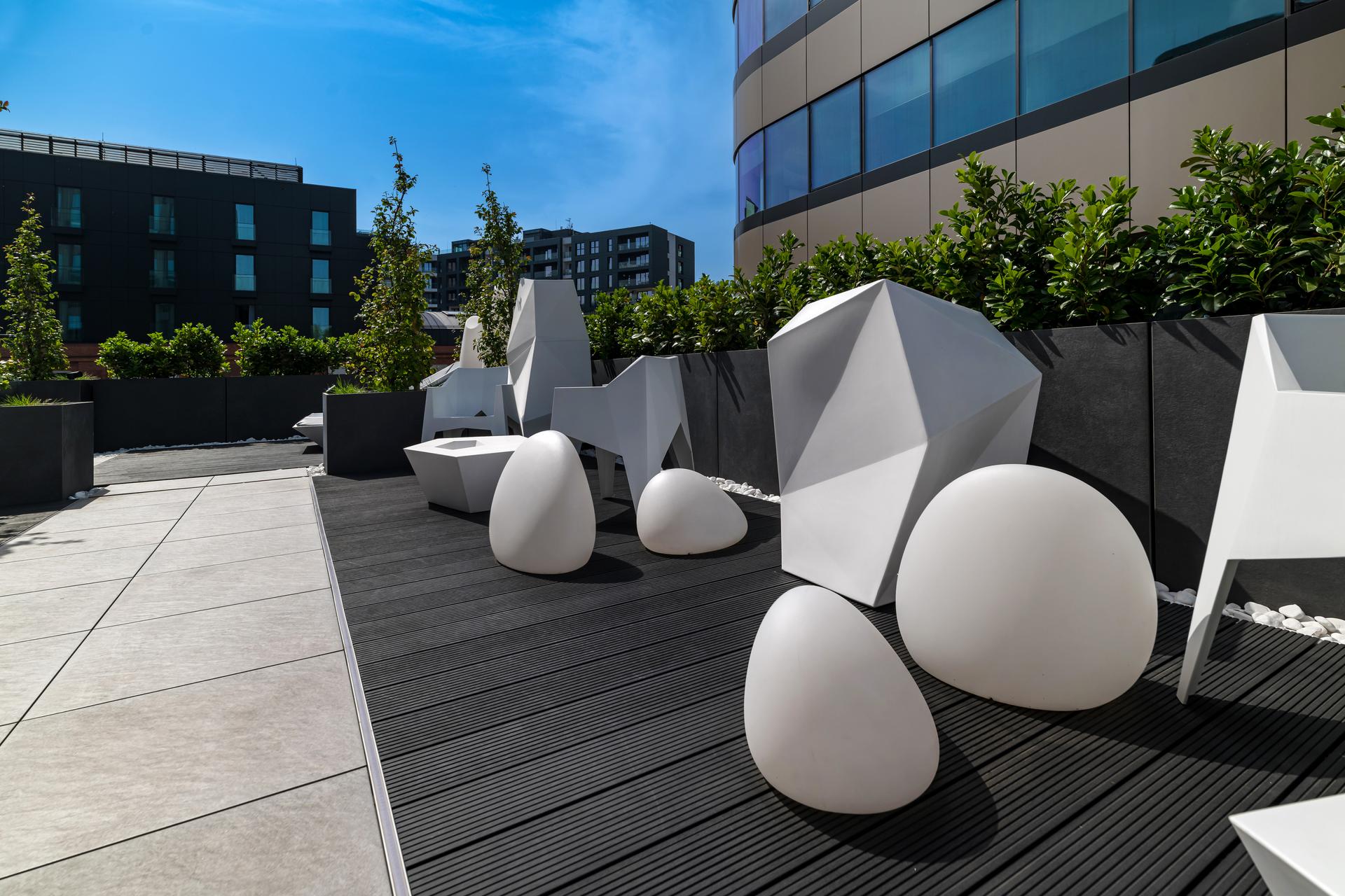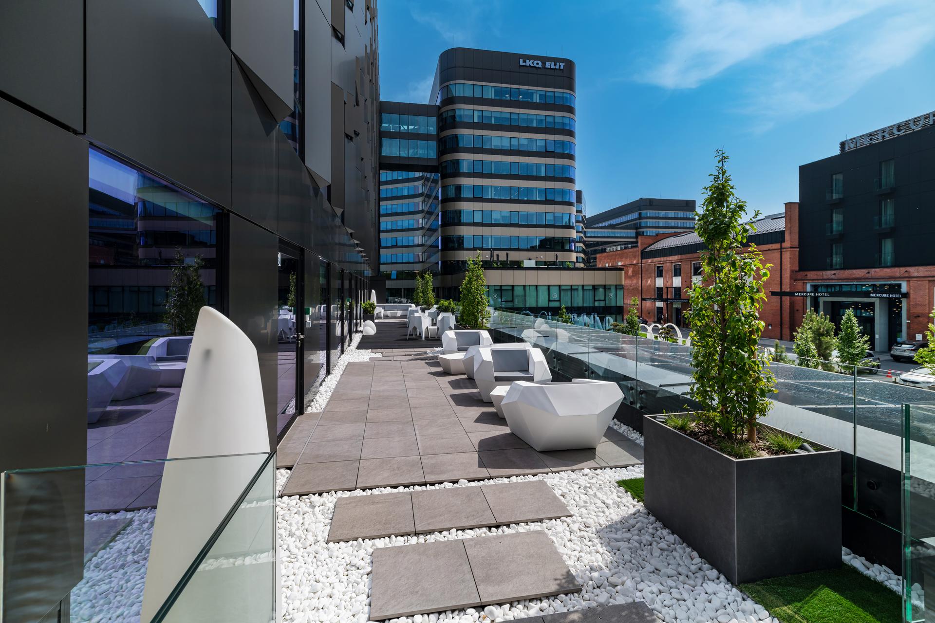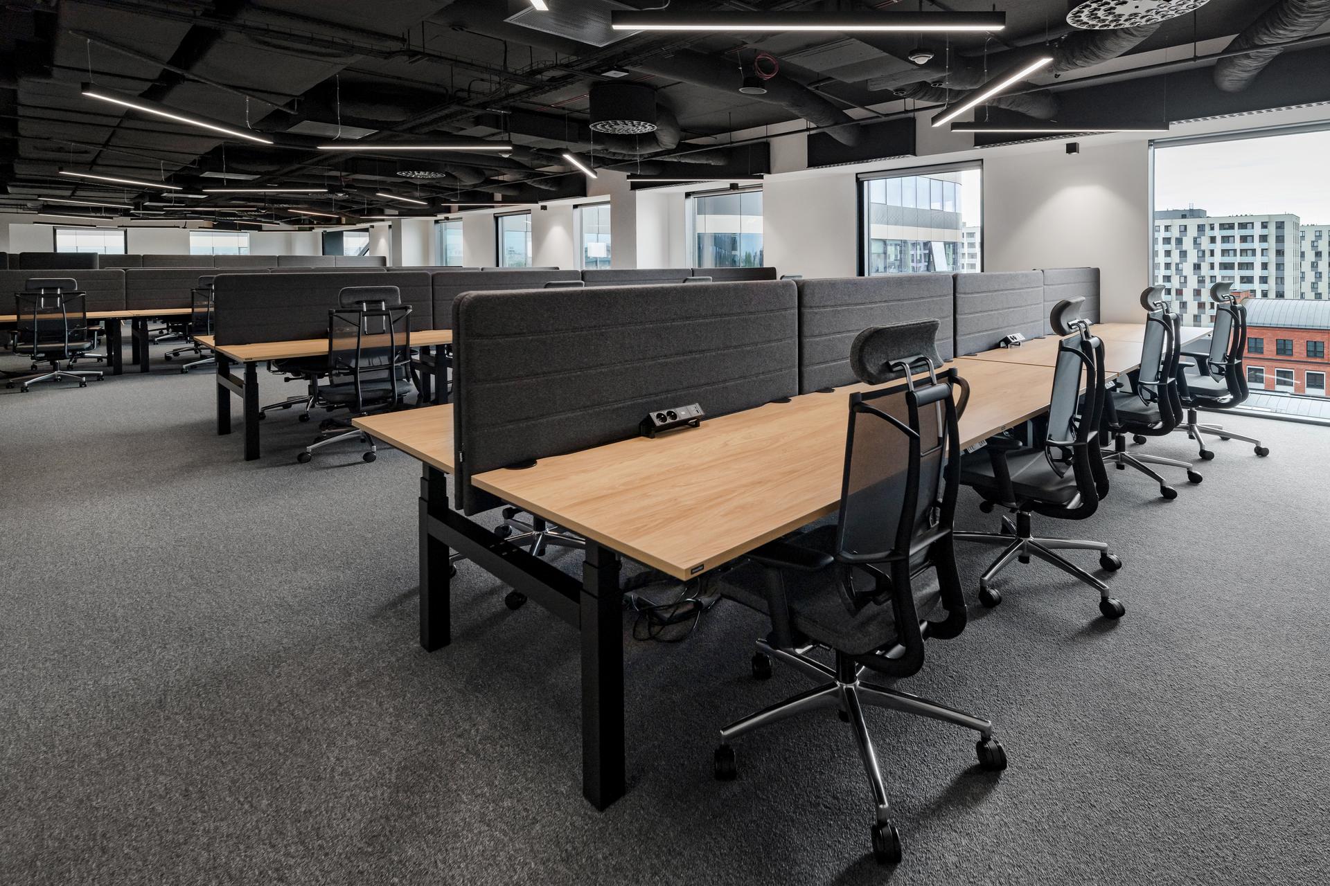 Fabryczna Flex has ten floors, on which dedicated desk zones and hot desk zones have been designed, as well as various configurations of office rooms that are suitable for both smaller, larger and corporate teams. All offices are equipped with ergonomic furniture with electrically adjustable desks, and on each level there is a modernly equipped kitchen, phone booths and relaxation zones. The interior of the office building has been enriched with a spacious terrace, a gaming room and a relaxation room, thanks to which employees will have the best conditions for work and regeneration. The building also includes 38 conference rooms with a reservation system, interactive monitors and full audio-video equipment, all for the convenience of tenants and to improve teamwork. Stylishly designed interiors, the level of services tailored to the needs of users, and relaxation and regeneration zones will promote greater employee involvement and strengthen the sense of community, thanks to which teams will be even more efficient.